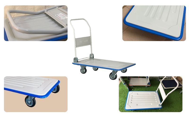Bánh xe cao su độc quyền: Phong Thạnh tự sản xuất bánh xe cao su nguyên chất, giúp xe di chuyển êm, không gây tiếng ồn và không để lại vết trầy trên sàn.