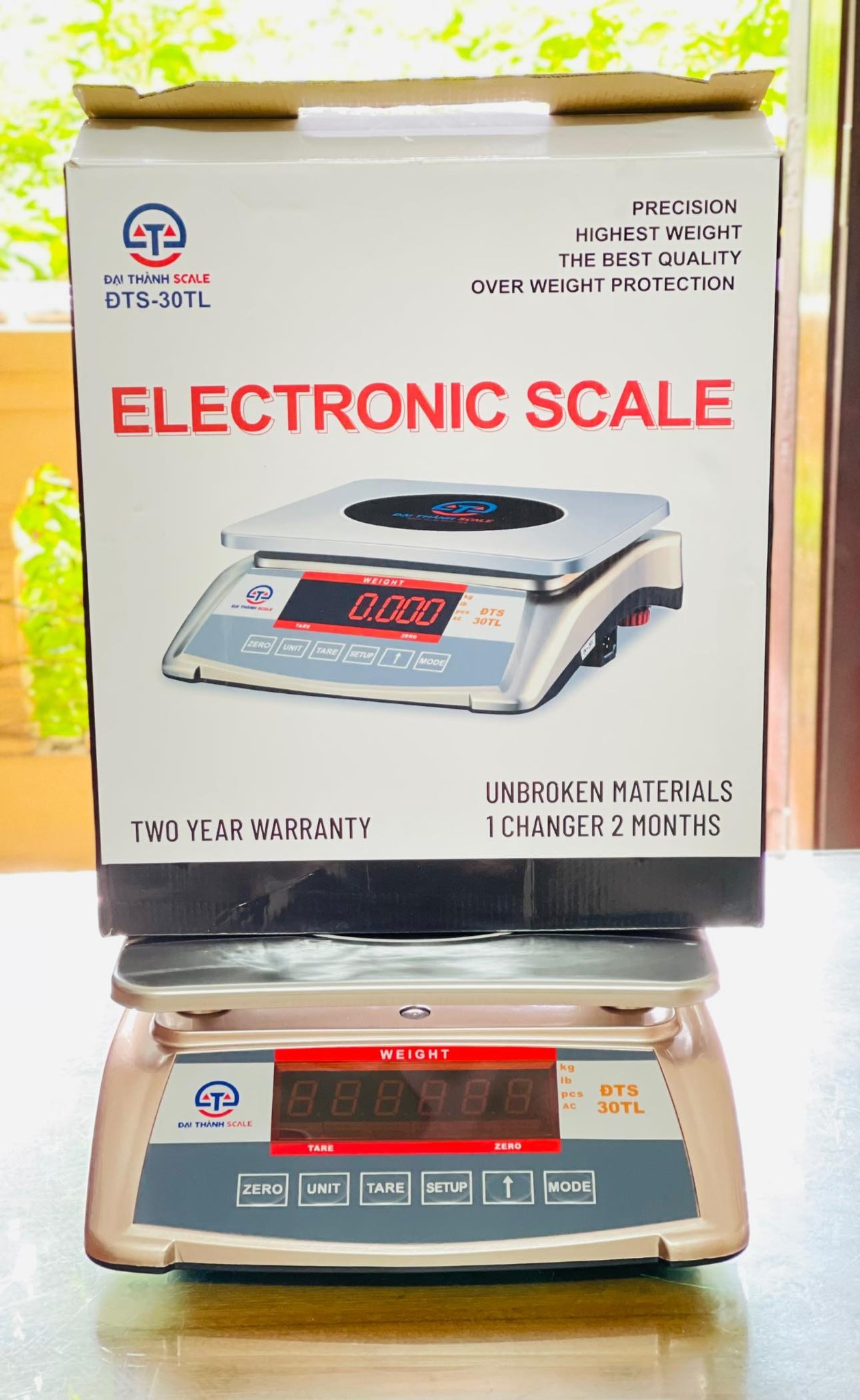 Cân điện tử Đại Thành ĐTS-30TL là thiết bị cân trọng lượng chính xác cao (bước nhảy 1g), tối đa 30kg, chuyên dùng cho siêu thị, cửa hàng, chợ.