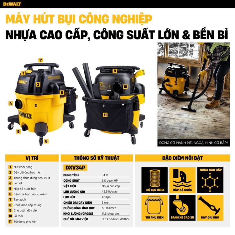 Máy hút bụi công nghiệp Dewalt DXV34P 34L