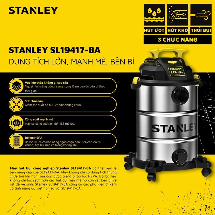 Máy hút bụi Công nghiệp 3 chức năng Stanley SL19417-8A