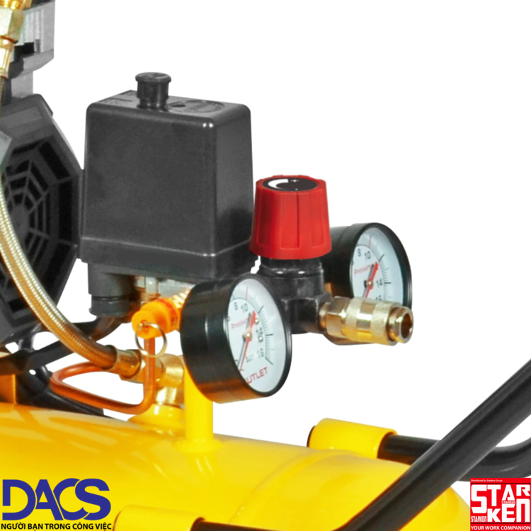 Máy nén khí không dầu 50L Stanley SXCMS1350HE được trang bị đồng hồ đo áp suất ở vị trí dễ nhìn và núm vặn điều chỉnh áp suất đầu ra thuận tiện cho người dùng.