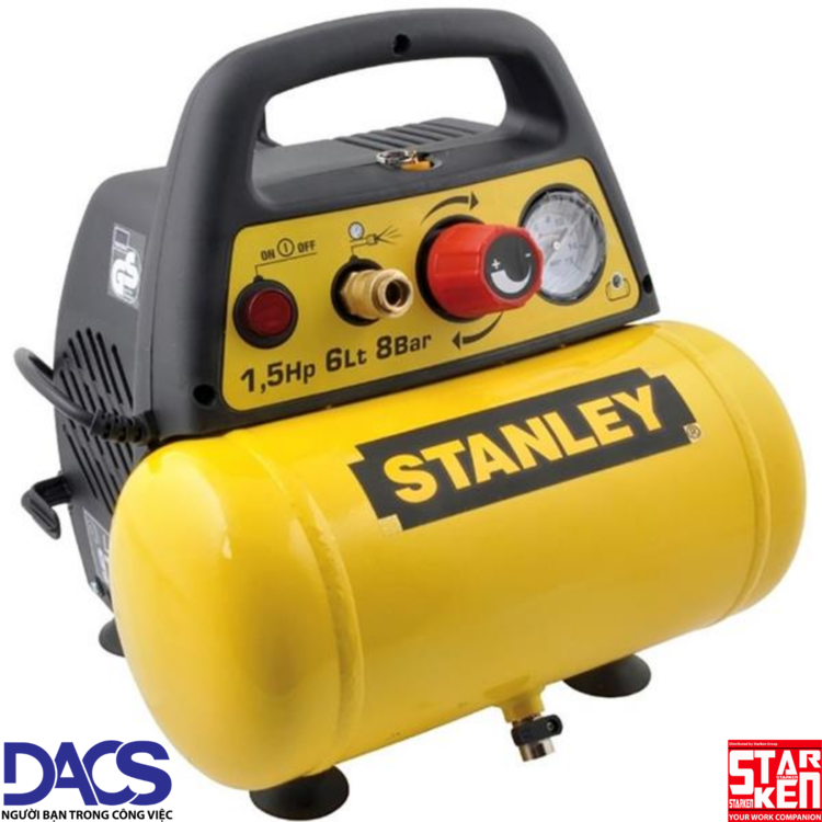 Máy nén khí không dầu 6L Stanley DN200/8/6 thuộc thương hiệu Stanley nổi tiếng của Hoa Kì.