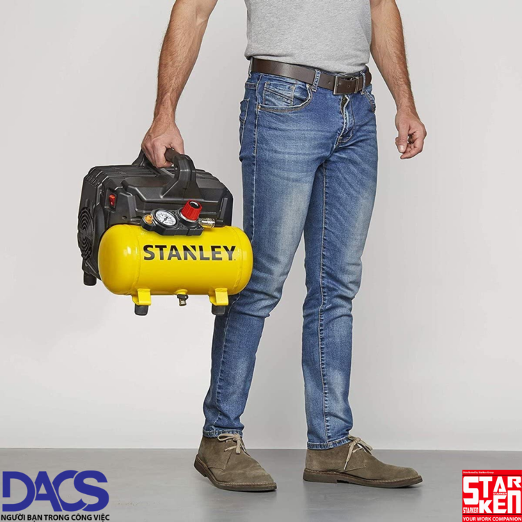 Máy nén khí không dầu 6L Stanley DST100/8/6 được trang bị đông cơ 1HP, hút được 105L không khí 1 phút với áp suất cực đại 8 Bar.