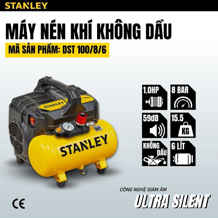 Máy nén khí không dầu 6L Stanley DST100/8/6