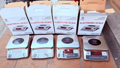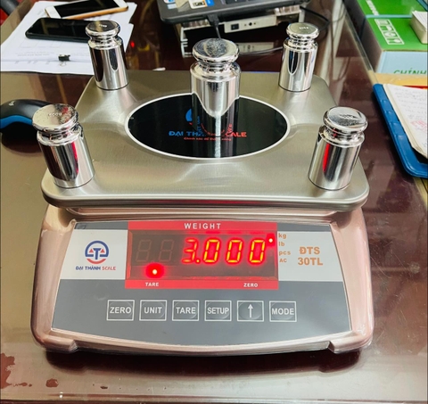 Cân bị lệch kim (không về 0): Sử dụng núm xoay chỉnh số ở phía trước hoặc bên cạnh cân để đưa kim về vạch 0.