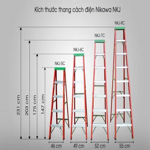 Thang cách điện chữ A Nikawa là một loại thang được thiết kế đặc biệt để đảm bảo an toàn cho người sử dụng trong các công việc liên quan đến điện. Dưới đây là một số thông tin cơ bản về thang cách điện chữ A Nikawa: