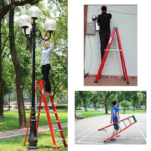Thang chữ A cách điện có nhiều công dụng quan trọng, đặc biệt trong các lĩnh vực liên quan đến điện và công việc trên cao. Dưới đây là một số công dụng chính của thang chữ A cách điện