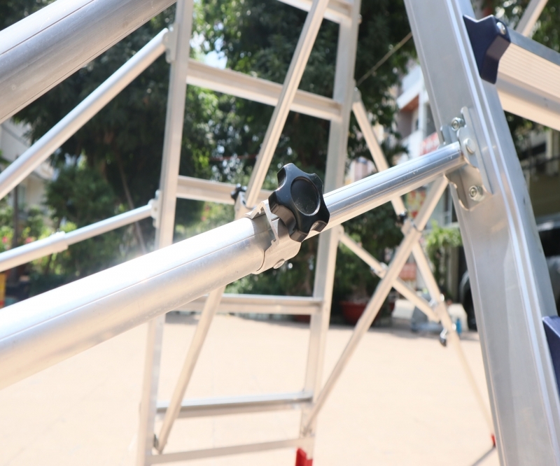 Thiết kế an toàn : Khóa an toàn: Tích hợp khóa an toàn để giữ thang ở vị trí cố định, tránh bị xê dịch khi sử dụng, đảm bảo an toàn tối đa.