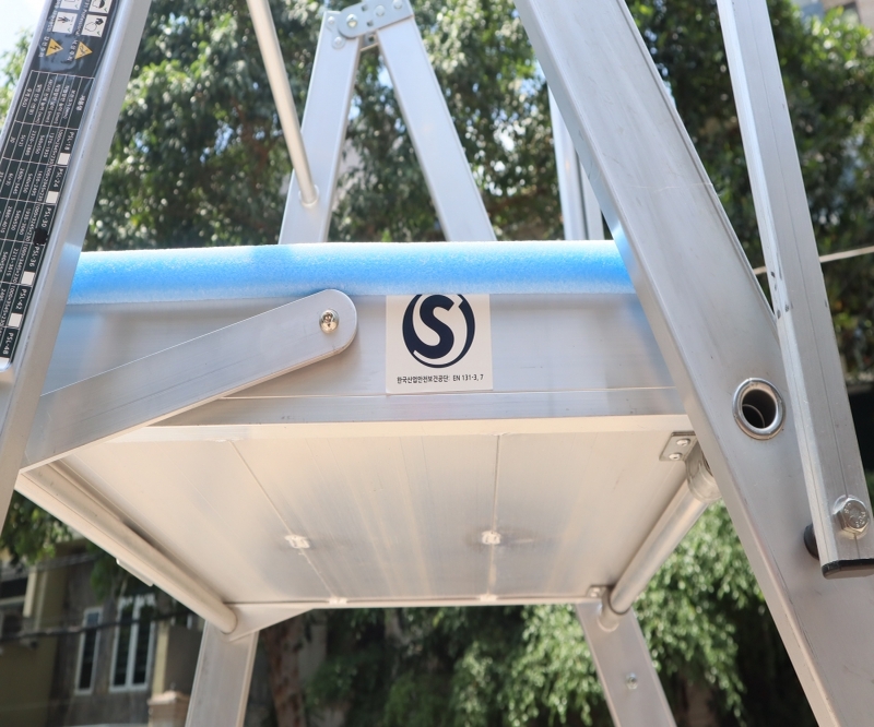 Xuất xứ và Tiêu chuẩn: Thang được nhập khẩu nguyên chiếc từ Hàn Quốc, là một thương hiệu uy tín về thang nhôm, và đạt tiêu chuẩn an toàn EN-131.