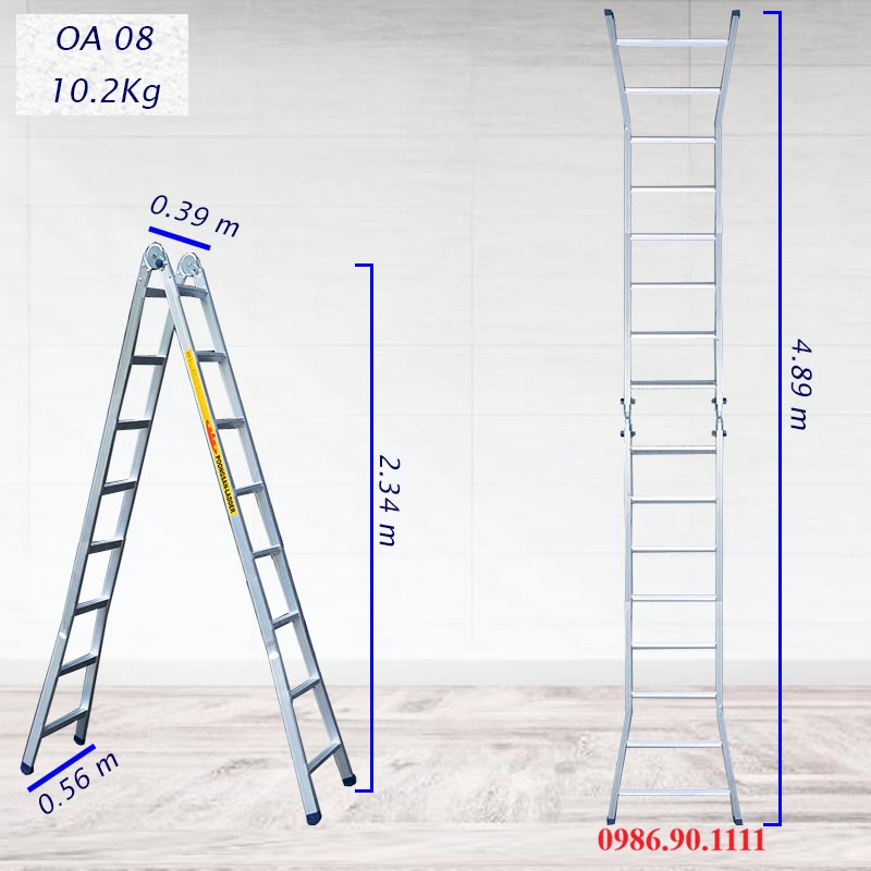 Thiết kế đa năng: Dạng chữ A (leo trèo) và chữ I (tựa tường), linh hoạt sử dụng trên nhiều địa hình khác nhau.
