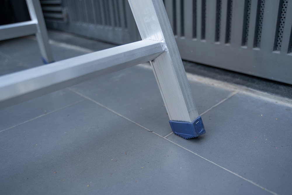 An toàn chống trượt: Chân thang có lớp cao su đặc biệt chống trượt hiệu quả trên sàn trơn trượt, ẩm ướt.