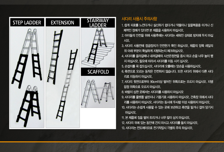 2. Sử dụng được ở nhiều địa hình: thang nhôm Hàn quốc được trang bị đế cao su chống trượt giúp thang bám chặt ở các địa hình trơn trượt. Thang nhôm Hàn quốc có thể sử dụng tại cầu thang vì điều chỉnh độ cao từng bên khác nhau tạo thế so le.