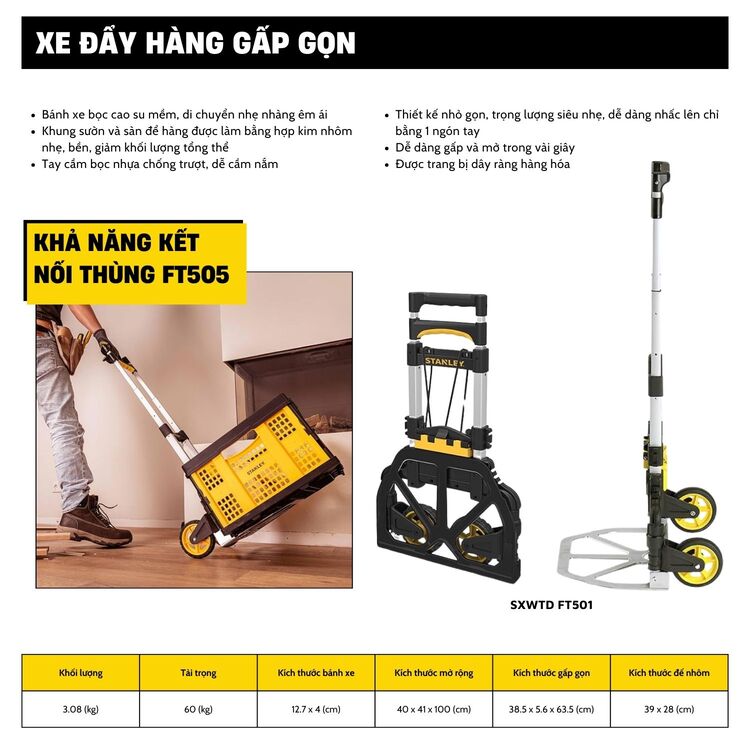 4. Tính năng gập gọn: Nhiều mẫu xe đẩy 2 bánh của Stanley có khả năng gập gọn, giúp tiết kiệm không gian lưu trữ khi không sử dụng.