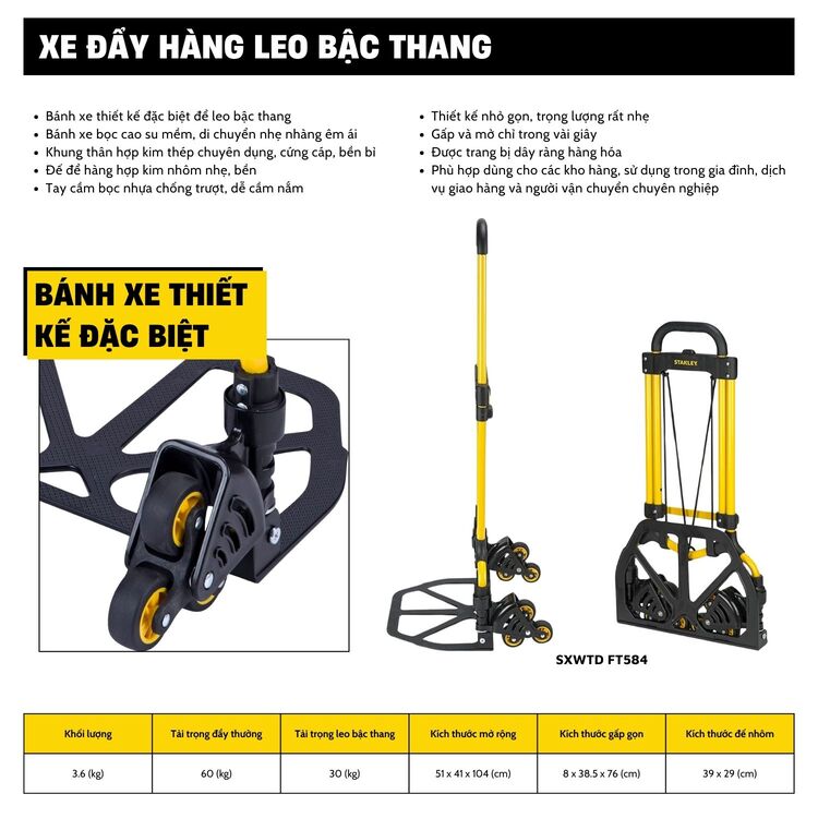 Xe đẩy hàng leo bậc thang, hiệu Stanley-USA FT584