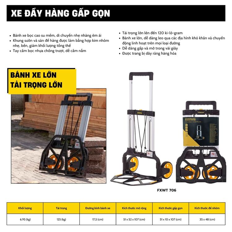 4. Tính năng gập gọn: Nhiều mẫu xe đẩy 2 bánh của Stanley có khả năng gập gọn, giúp tiết kiệm không gian lưu trữ khi không sử dụng.