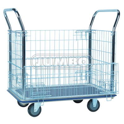 Xe đẩy hàng có lưới bảo vệ Jumbo Thái Lan HB-213 có bề mặt sàn rộng kết hợp với lưới bảo vệ bọc xung quanh nên có thể chở được nhiều hàng hóa cùng lúc mà không lo bị rơi ra ngoài. Người dùng có thể tháo mở các tầng lưới tùy theo nhu cầu sử dụng. Bánh xe cao su được bắt vít chắc chắn, di chuyển linh hoạt theo ý muốn và không để lại vết trầy trên sàn khi di chuyển.